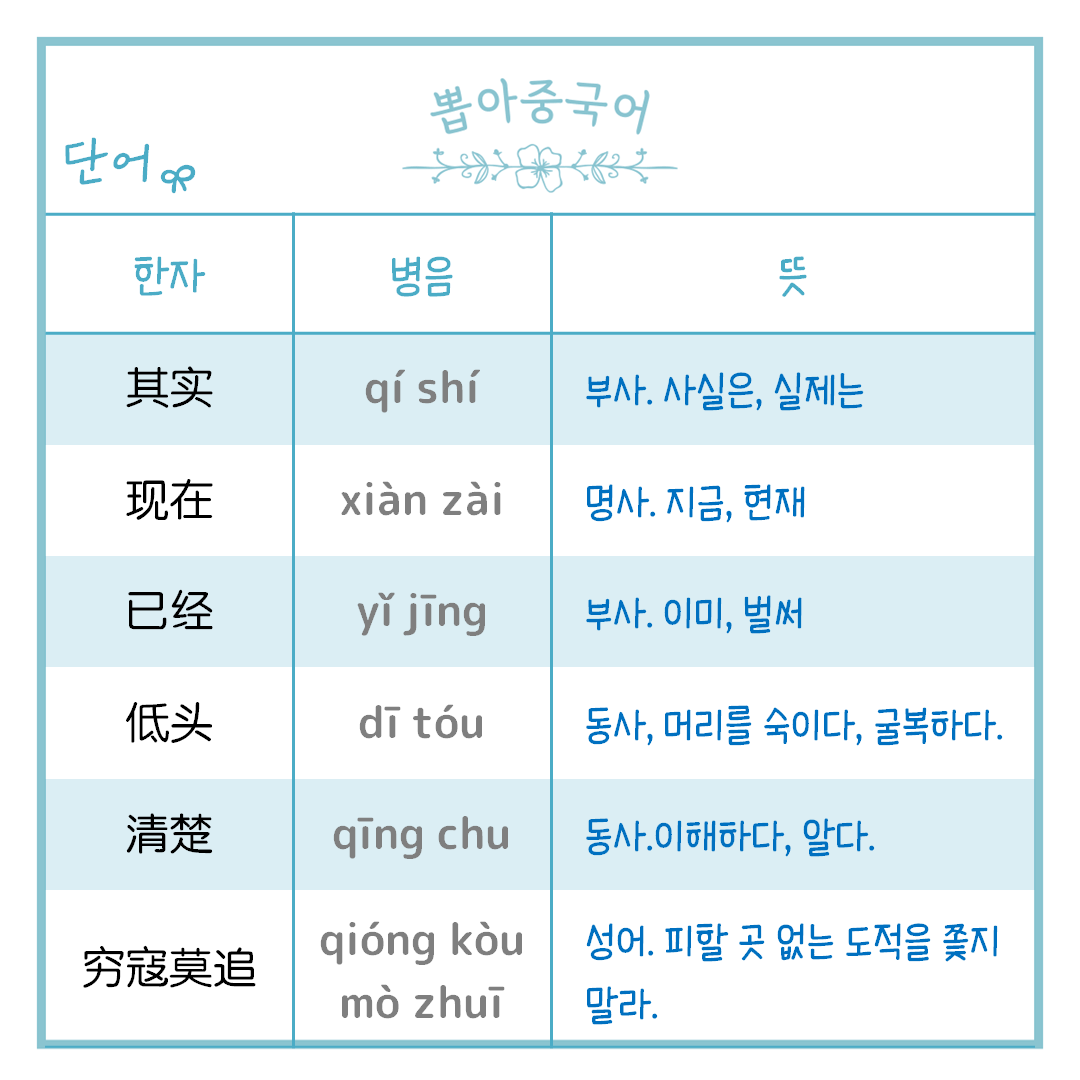 ☞ 우선 중국어만 보시고 파악해 보세요!