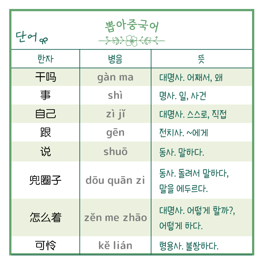 ☞ 우선 중국어만 보시고 파악해 보세요!