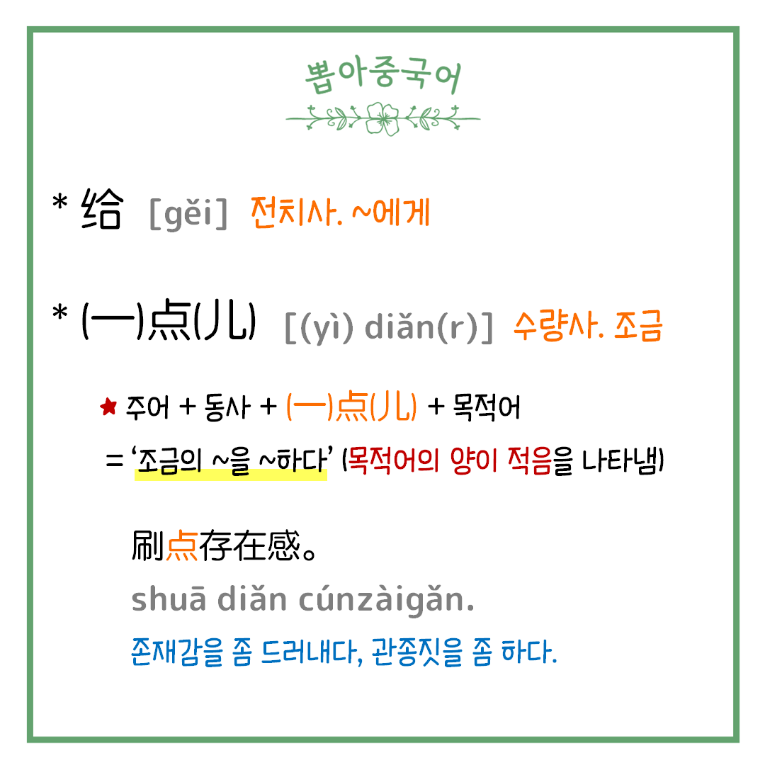 ※ 본문 속에서의 해당 문장 ‘给我刷点存在感?’ ('③'에 해당)