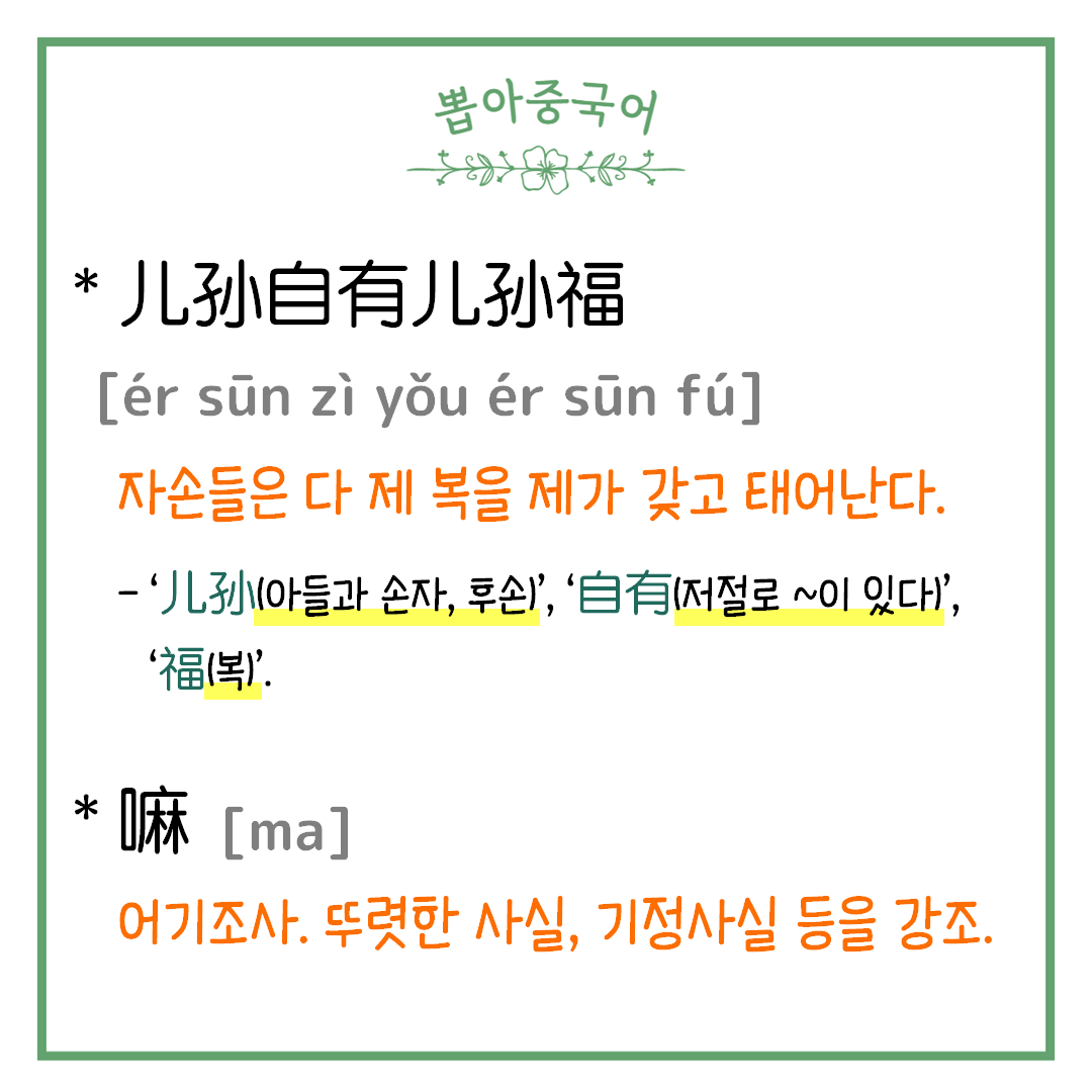 ※ 본문 속에서의 해당 문장 ‘儿孙自有儿孙福嘛’ ('①'에 해당)
