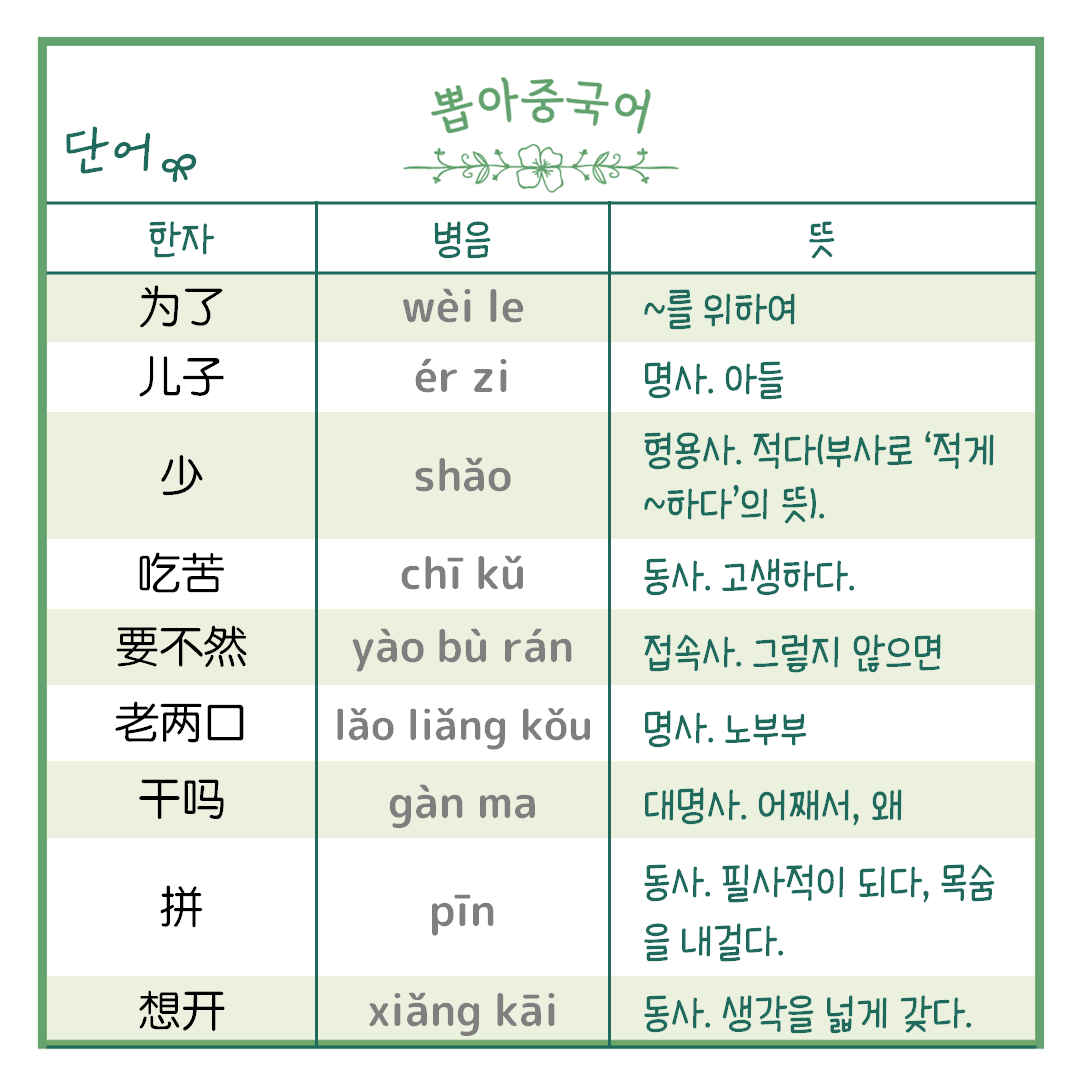 안녕하세요~ 핵심을 뽑아 공부하는 뽑아 중국어입니다!