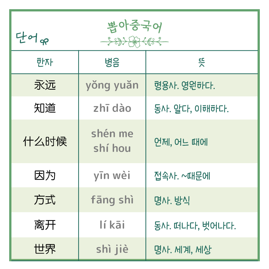 ☞ 우선 중국어만 보시고 파악해 보세요!