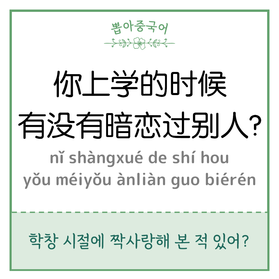 ※ 본문 속에서의 해당 문장 ‘你上学的时候有没有暗恋过别人?’