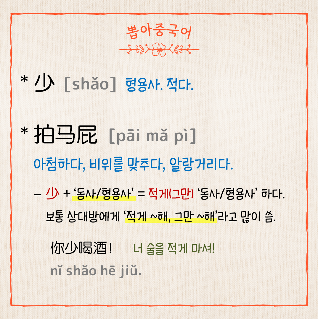 안녕하세요~ 핵심을 뽑아 공부하는 뽑아 중국어입니다!