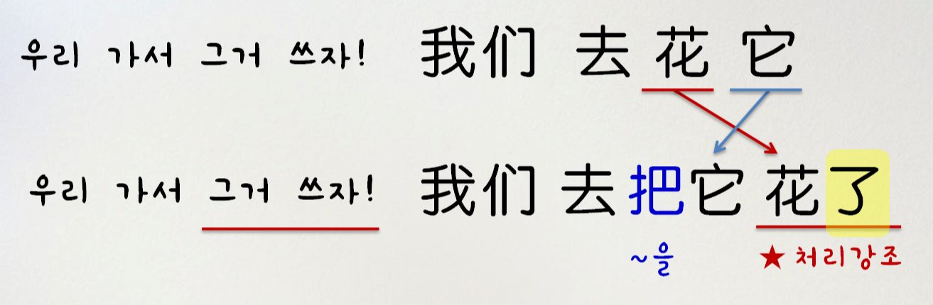 ☞ 그럼 오늘의 문장 ‘我们去把它花了吧’은 어떤 구조?